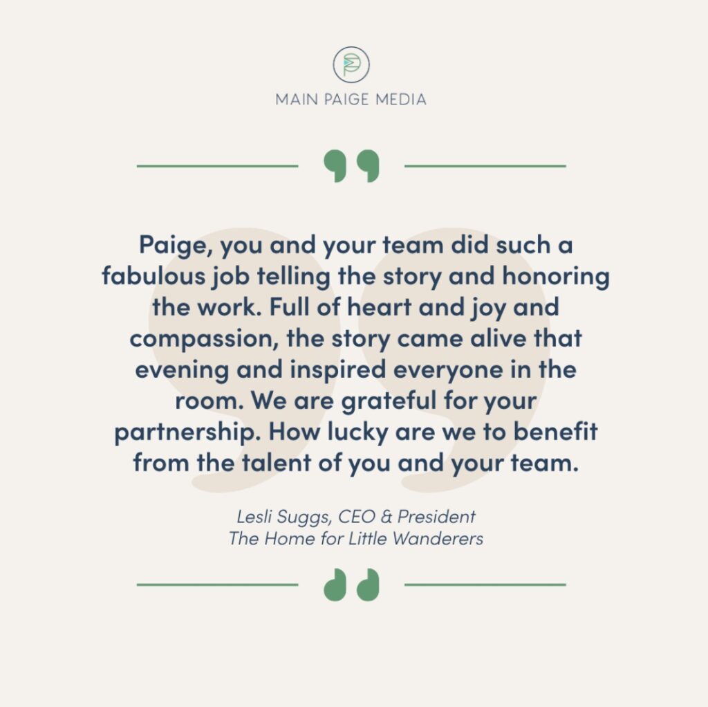Nonprofits choose Main Paige Media because we make storytelling effortless. We handle the creative heavy lifting from script planning, interview prep, filming, editing, and multi-platform delivery, so you can focus on the mission and the moments that matter. Every clip, soundtrack, and graphic is aligned with your brand and values to ensure your story feels cohesive, compelling, and deeply human.